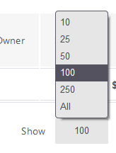 - Show: Select the number of rows you want to display on the current page of transactions. The default is 100 rows; You can Select from “10” to “All” transactions to show on a single page.