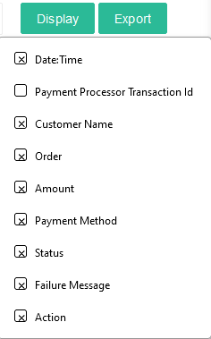 Understand that the more rows there are, the more time it will take to load. - Display: It has all the 8 Transactions Columns listed. Check/Select the columns relevant to you so that no unnecessary information is loaded for a clean look.