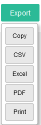 - Export: This will let you download all the transactions loaded with applied filters. You can copy—and download the list in—CSV,—Excel,—or PDF—format or print directly.