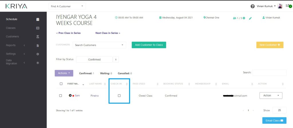However there is no compulsion to check in a student. It is good practice for Owners/Teachers, to remember if your client was present for that particular Booking/Visit.