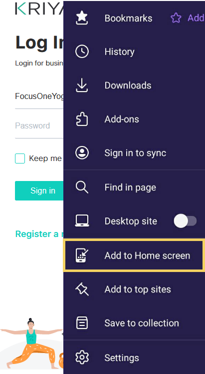 KRIYA mobile app is only for the students to pay, book and cancel classes. However, you can add the link to the KRIYA Dashboard on the Home screen on any mobile device or tablet.