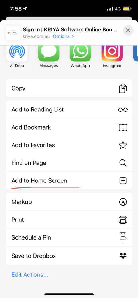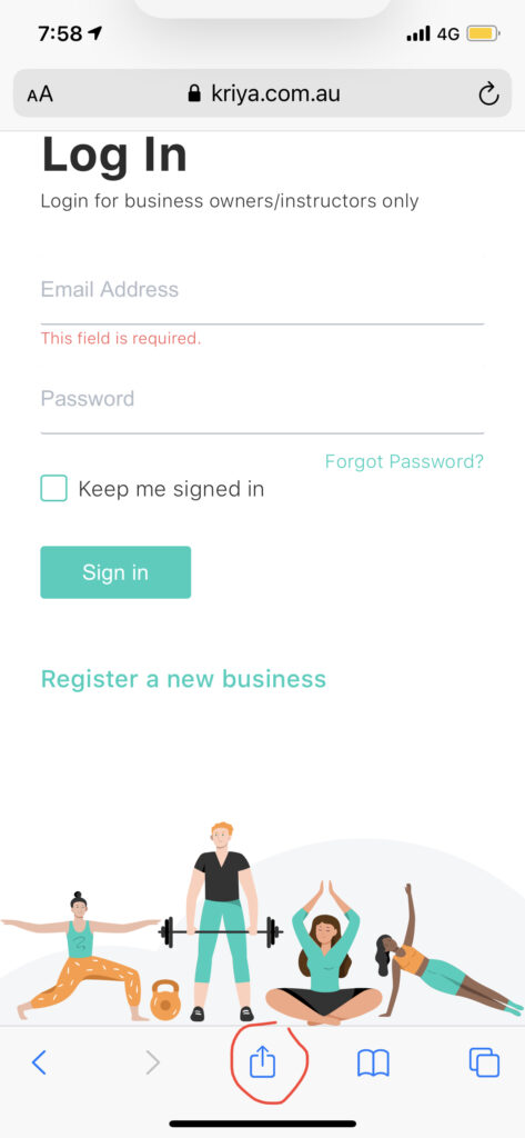 - Open https://www.kriya.com.au/dashboard/ in Safari browser.