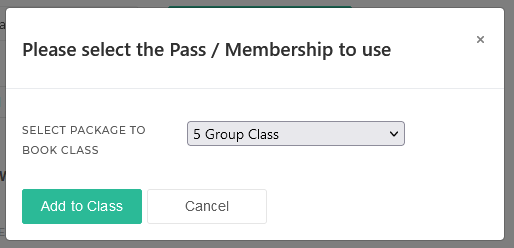 - If the customer has a pass, you will be asked to select the plan to use for this class, select the preferred plan Click on Add to Class button.