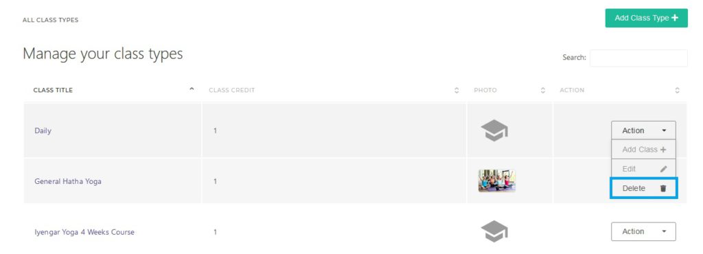 Class Types can be Created and Deleted from Settings >> Class Types.