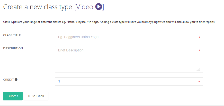 In KRIYA, we can create multiple Class Types. Class Types are categories of classes that can then be used to make a schedule for the students to book.