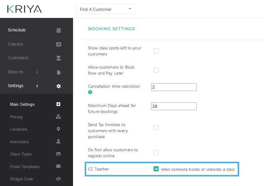 Scroll to the Find—Booking Settings—Section on the same Main Settings page.