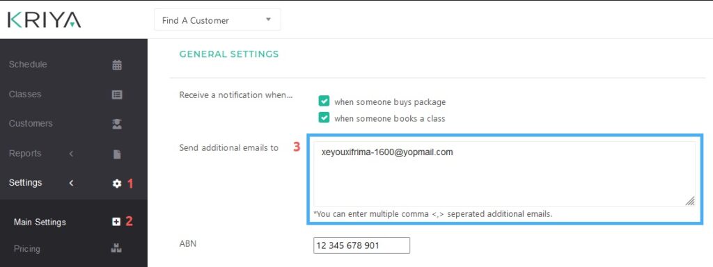 KRIYA provides a feature to mail Customers of a Business. The link to check the students’ bookings is on the class page. They can also email the students who have booked the information about this upcoming class.